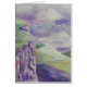 Cartão com imagem tirada da pintura original de penhascos, montanhas e um céu tempestuoso em Gales. Imagem atmosférica em púrpuras, azuis e verdes.