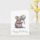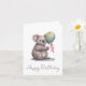 Op de voorkant van de kaart staat een afelding van een schattige koala en felgekleurde ballon vasthoudt. De koala kijkt je vriendelijk aan en lijkt bijna te willen zeggen "Gefeliciteerd!" em zijn eigen schattige taal. De ballon é versierd met feestelijke kleuren en patronen en geeft een vrolijke en feestelijke sfeer aan de kaart. De kaart é perfeito om the sturen naar iemand die jarig is en is gegarandeerd om een glimlach op hun gezicht te toveren.