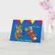 Cartoon bull rider e cartão de saudação de palhaço rodeado com texto personalizável. Use o botão personalizar se quiser alterar o texto na frente ou adicionar texto adicional no dentro da placa.
