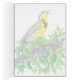 Um cartão de boas-vindas com o Western Meadowlark cantando enquanto ele toca num arbusto de Óregon inspirado pelo State Bird and State Flower do Oregon desenhado com caneta e tinta pretas e pintado com aquarela.