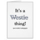 É uma coisa de West Highland White Terrier e só você entende. Coloque esta design "É uma coisa Westie, você não entenderia" em uma camiseta, caneca, adesivo, cartão, botão, poster e muito mais.