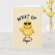 This design shows a chubby, human-like chick standing front and center on a warm, light beige background, giving off an easygoing, friendly confidence. Its sunny yellow body is softly shaded to look smooth and cuddly, with a slight head tilt that feels like it’s greeting someone it likes. Dark sunglasses sit across its face, and a gold-toned chain rests at its neck, while rosy cheeks add a sweet, affectionate touch like it’s sharing an inside joke with a close friend 🌷. A small orange beak and tiny orange feet keep the look simple and cute, like a quick wave in cartoon form. Near the top, the text “WHAT UP” appears in thick black letters, slightly arched over the character. Near the bottom, “Peeps?” is written in flowing black lettering that leans a bit to the side, leaving open space around the chick 🐰. The sunglasses are a deep black with a subtle shine, and the yellow shading transitions gently from brighter highlights to softer midtones.