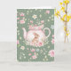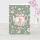 Cartão Whimsical Bunny Green Teapot Floral Easter