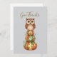 A carta chata de Ação de Graças apresenta uma coruja em uma pilha de abóboras de retalhos. O texto "Dê Obrigados" é editável. Disponível nos formatos de impressão e de download digital.
