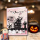 Cartão Whimsical Rosa e Preto para o Dia das Bruxa
