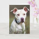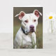 Este cartão de aniversário apresenta um bonito Pitbull branco.
