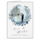 Projetado para coordenar com a nossa coleção de casamento Wild Azure, estes cartões de chic botanical que vos agradecem apresentam uma coroa de folhagem azul de inverno cercando a sua foto favorita de casamento. "Amor e obrigados" aparece abaixo em letras elegantes de escrita caligráfica. Personalize a frente com seus nomes e adicione uma mensagem de dentro pré-impressa opcional.