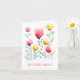 Flores folclóricas coloridas brancas e amarelas Cheery vermelhas e amarelas da Escandinávia complementam a tipografia retrógrada neste cartão de aniversário floral estilo dos anos 70. Estas flores silvestres informais divertidas são todas pintadas à mão e únicas!