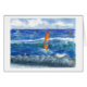 Como maravilhoso é surfar no oceano azul e no céu azul?