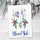 Envie a saudação perfeita para este feriado com uma brilhante e colorida cor d-d-água Winter Boho Blue Crystals e Holly "Bendeded Yule" Solstice design apresentando seu texto personalizado em um modelo fácil de editar.