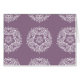 Esta mandala branca senta-se sobre um fundo púrpura leve e vírgula. A cor é clara e sofisticada. Parte da coleção Jarn Mandala.