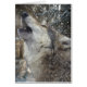 Um lobo uivará na floresta à medida que a neve começa a cair. Pastel art por prêmio ganhadora da vida selvagem Kathie Miller