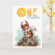 A charming woodland first birthday card featuring a cute squirrel sitting on a tree stump surrounded by pinecones and forest berries. This watercolor forest animal design is ideal for celebrating a baby’s first birthday and suits both boys and girls. Personalize the card with “ONE” and a name for a sweet and memorable birthday greeting.
