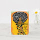 This birthday card for Mother's features an African American woman sitting in a chair with a multi-color dress and Afro Art with inspirational words.