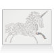 Este Unicórnio Mundial é criado das palavras "unicórnio" em 70 línguas de todo o mundo. A imagem de dentro é uma chave para os idiomas usados. Você pode personalizar a saudação dentro com seu próprio texto, se quiser. Se você gosta da fonte usada para a saudação de dentro, ela está disponível em http://www.myfonts.com/fonts/parquillian/parquillian/