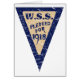W.S.S., Economias de Guerra marcam poster de 1918. W.S.S. eram os laços de guerra da primeira guerra mundial. Um triângulo invertido com as palavras W.S.S. prometido para 1918 no centro. A design está levemente angustiada.