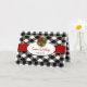Saudação natalícia única e elegante desenhada em camadas de xadrezes negras e brancas com uma fita falsa vermelha que a acentua juntamente com uma coroa de pinheiros. Estarão disponíveis em diferentes categorias. O verso e saudações da temporada tornam isso ideal para as empresas enviarem aos clientes ou funcionários. Insira o nome da empresa no dentro, se preferido, ou simplesmente remova o texto da assinatura.