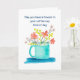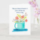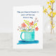 Envie um pouco de bondade todos os dias com este alegre cartão de encorajamento em aquarela, apresentando uma xícara de café verde-azulado cheia de flores em flor e a mensagem inspiradora: “Que você tenha um dia com flores na xícara de café.”