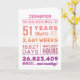 Personalized “You Have Been Loved For 51 Years” birthday card featuring milestone numbers—years, months, weeks, days, hours, and minutes. Add the recipient’s name for a custom touch and edit the inside message to make it your own. A unique, heartfelt birthday card perfect for a 51st birthday celebration.