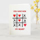 This Valentine’s Day card uses a fun game theme to share a loving message. At the center is a classic tic-tac-toe grid drawn in black, filled with bold red hearts and black X marks. The hearts form a winning line, making the meaning clear at a glance. Above the grid, the words “YOU HAVE WON” appear in red lettering, while “MY HEART” is written below, completing the message. The bright white background keeps everything crisp and easy to see, letting the red hearts stand out like stickers on the board. This card is a sweet way to say someone has truly won your heart, making it perfect for Valentine’s Day or an anniversary.