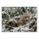 Um jovem leopardo-da-neve sai do meio de uma bela neve coberta de arbustos.