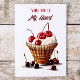 Cone de sorvete de morango rodeado por cerejas com um belo cartão romântico de aniversário feliz.