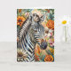 Uma zebra entre flores. Adequado para um cartão de aniversário para qualquer um. Você pode alterar o texto