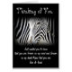 Uma Zebra com expressão, com um quadro negro, Saudações. Arte de Elenne Boothe