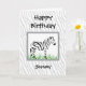 A unique card for any child who is attracted to Zebras. The design features a framed Zebra art image placed on a background composed of simulated Zebra stripes. Personalize it with a name. All text is easily changed by using the template. For any other desired changes (different type fonts, color, size, or placement) select "Personalize this template" then select "Edit using Design Tool." You may want to scroll down to the section "Transfer design to a product" for suggestions about other styles of cards this design can be used on (includes a flat card).