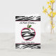 A notecard featuring a zebra print border across top and bottom with pink trim. Matching zebra print apple at center. Personalize with your name. Add your message inside. Also available in greeting card size.