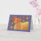 Aries o carneiro se coloca contra um céu noturno cheio de estrelas ouros. Sinal de fogo, 21 de março - 20 de abril (pode haver variação nas datas). Cartão de saudação com um design personalizável de ouro, laranja, roxo e azul na frente para você personalizar com seu próprio texto, imagens e ideias e dentro de 'Feliz Aniversário' escrito. Um lápis de cor original e desenho de tinta metálica de Jess Perry.