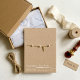Coleção em caixa com um ecrã de cartão kraft genuíno para colares ou pulseiras. O papel natural e quente e a tipografia branca nítida criam um aspecto limpo e butique que deixa a peça brilhar. Os marcadores de posicionamento impressos sutis garantem uma configuração rápida e consistente nos mercados, para pedidos Etsy e em exibições de armazenamento. O texto, as fontes, as cores e os tamanhos podem ser ajustados para alinhar com o estilo de marca.