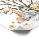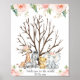 Cartaz de assinatura de livro de visitas de impressão digital de animais bebê safari doce com lindos arranjos florais, quatro adoráveis animais de selva em aquarela e uma árvore marrom nua.