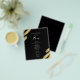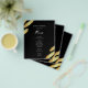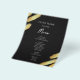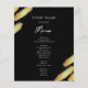 Menu Preto e Dourado Abstrato. Folha dourada falsa. Fonte de caligrafia destaca com fonte serifada fácil de ler para o nome. Fácil de ajustar para as necessidades do seu casamento. Faça seu próprio menu, use seu próprio texto para criar um menu de evento elegante, mas barato e acessível. Fácil de personalizar. Folhas de papel de menu personalizadas.