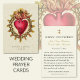 Apresentando uma bela imagem católica tradicional do Coração Sagrado de Jesus com um fundo semelhante a um rendas. Uma oração está atrás da noiva e do noivo. Todo texto e fontes podem ser modificados.