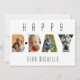 Personalize este cartão de aniversário bonito e moderno. Adicione 4 fotos favoritas ao recorte de tipografia B/Day. Você pode personalizar o texto. Você também pode personalizar o texto no verso ou excluí-lo se desejar.