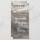 Madeira rustica e cordas lançam menu janto de casamento. Pavimento personalizado de madeira de cinza decorada com fio de luz. Convite de casamento perfeito para o casamento com luzes noturnas tema do casamento, tema do celeiro, tema do jardim, casamento ao ar livre com luzes cintilantes.