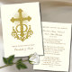 Celebre o Sacramento do Matrimônio Sagrado com esta elegante carta de oração de casamento católica. Apresentando uma cruz de ouro radiante entrelaçada com bandas de casamento e ornamentado de rolagem, a frente lê "Unidos no Coração de Jesus" acima dos nomes da noiva e do noivo. Dentro, uma reverente bênção nupcial invoca a graça de Deus e a intercessão da Bênção Virgem Maria. Uma bela manutenção para o dia do casamento, perfeita para convidados católicos, favores de oração, ou uma devoção de noivas.