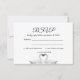 Um cartão RSVP simples e elegante para um casamento branco com modelos para resposta por data, nomes etc. Dois belos cisnes dobrando a cabeça e formando uma forma cardíaca. Fundo branco. Nome da noiva e noiva, data do casamento e local do casamento. Com uma imagem dos dois cisnes.