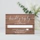 Uma simples placa RSVP de script de assinatura elegante com seus detalhes definidos em tipografia química e painéis de madeira rústica, luzes de cordas e frascos de pedras no reverso. Projetado por Thisnotme©