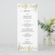 Menu Floral de Casamento Elegante, com nomes de casal atrás.