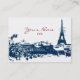 Uma skyline artística de Paris é caracterizada neste cartão de visita feito sob encomenda. De um cartão antigo, das características deste design a torre Eiffel e de uma cena da cidade. A cena é azul marinho e pode ser colocada em todo o fundo da cor, clica simplesmente sobre "personaliza-o," então "edite" e "fundo." Você pode igualmente mudar o estilo e as cores de pia batismal. Também disponível em cores diferentes em minha loja.