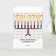 Chanukah Sameach (Um Chanukah alegre) em hebraico com uma menorah colorida. Um design hanukkah. Cartões personalizáveis — dentro saudando a frase "Happy Chanukah".