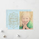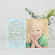 Cartões de foto de Natal elegantes, modernos que caracterizam sua foto de família favorita. Ilustrado com flourishes do ouro, redemoinhos e estilo bege em uma luz - fundo azul da tipografia do vintage. Rico e na moda, lê "tem um Natal alegre do azevinho" com um roteiro extravagante moderno. Envie os desejos os mais mornos à família e aos amigos com este cartão bonito.