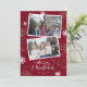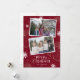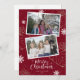 Foto vermelha personalizada Cartões de Natal Merry com flocos de neve e presentes em um fundo vermelho com letra escrita manuscrita. Personalize facilmente estes cartões de Natal fotográficos com as suas imagens e texto.