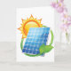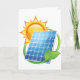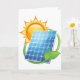 Nós todos precisamos a energia e a energia solar é uma boa opção. Aproveite o poder do sol. Este design é toda sobre a energia solar com um painel solar que captura a luz solar brilhante. Este design da energia solar olha grande nestes cartões