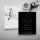 Estes elegantes cartões de casamento preto e dourado são projetados com um beija-flor pintado à mão. Personalize com os detalhes do seu dia especial para eterno e convites memoráveis.
