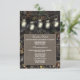 Cartões de Acompanhamento de Recepção de Casamento Caça Camuflada em Pote de Mason - para informações de hotel/recepção - apresentam potes de mason iluminados pendurados com um fundo de caça camuflada na frente e verso com uma caixa de texto de aniagem marrom na frente.