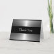 Cartões de agradecimento elegantes preto e prata. Este cartão de agradecimento preto e prata funciona bem para agradecer o aniversário de um homem, cartão de agradecimento de formatura de meninos, cartão de agradecimento de aniversário de casamento de prata, cartão de agradecimento corporativo, cartão de agradecimento Bar Mitzvah, ou em qualquer outra ocasião. Este simples e elegante cartão de agradecimento preto pode ser personalizado simplesmente escolhendo o botão laranja "Personalize!" para começar a adicionar os detalhes do seu evento, estilo de fonte, tamanho e cor da fonte e texto. Por favor, note que todos os desenhos de cartões e convites que você encontrará no Zazzle são gráficos impressos sem joias reais, laços, relevos, em relevo ou peças ou partes adicionadas.