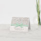 Lindos e femininos cartões de agradecimento de casamento com aspecto de renda antiga e pérolas, com um design de fita de costura contrastante em verde menta impresso e um fundo de damasco cremoso de coco, branco e marfim. Adicione a assinatura do casal feliz e uma mensagem especial dentro do cartão. Criado e projetado por Chrissy H. Studios, LLC. Todos os Direitos Reservados.